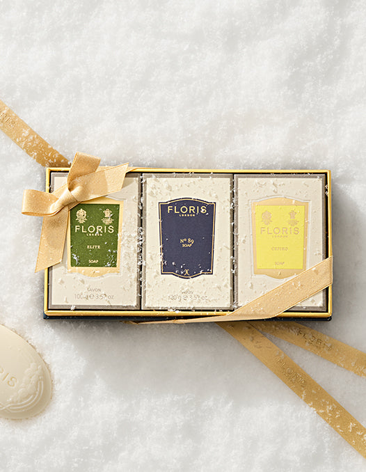{"id":7517369630816,"title":"Soap Collection | For Him","handle":"soap-collection-for-him-2025","description":"\u003cp style=\"text-align: center;\"\u003e\u003cspan\u003eCurated with three of our distinguished gentlemen’s fragrances: Elite, a green, fresh woody character evolving with amber and musk. Cefiro, Crisp lemon and lime, accented by bergamot and mandarin, and the bestselling N° 89, a traditional blend of fresh citrus top notes blended with a spicy woody character. This set is a timeless gift for the festive season. Infused with shea butter to deeply moisturise, it leaves the skin soft, smooth, and subtly scented. An elegant and thoughtful gift for him.\u003c\/span\u003e\u003c\/p\u003e","published_at":"2025-10-16T07:58:58+01:00","created_at":"2025-09-30T09:51:11+01:00","vendor":"Floris London UK","type":"Gift Set","tags":["cefiro collection","collection: bath and body","elite collection","No.89 collection"],"price":6000,"price_min":6000,"price_max":6000,"available":true,"price_varies":false,"compare_at_price":null,"compare_at_price_min":0,"compare_at_price_max":0,"compare_at_price_varies":false,"variants":[{"id":42331303510112,"title":"3 x 100g","option1":"3 x 100g","option2":null,"option3":null,"sku":"00425","requires_shipping":true,"taxable":true,"featured_image":null,"available":true,"name":"Soap Collection | For Him - 3 x 100g","public_title":"3 x 100g","options":["3 x 100g"],"price":6000,"weight":885,"compare_at_price":null,"inventory_management":"shopify","barcode":"886266004255","requires_selling_plan":false,"selling_plan_allocations":[],"quantity_rule":{"min":1,"max":null,"increment":1}}],"images":["\/\/www.florislondon.com\/cdn\/shop\/files\/SoapCollectionforHim.png?v=1759222315","\/\/www.florislondon.com\/cdn\/shop\/files\/Soap_Collection_for_Him_Lifestyle.jpg?v=1759222323","\/\/www.florislondon.com\/cdn\/shop\/files\/Soap_Collection_Lid_b7a006bc-fed7-446b-b270-359d53981c56.png?v=1759222329"],"featured_image":"\/\/www.florislondon.com\/cdn\/shop\/files\/SoapCollectionforHim.png?v=1759222315","options":["Size"],"media":[{"alt":"Floris London UK Soap Collection | For Him: three soaps in Elite, No. 89 \u0026 Cefiro, each enriched with moisturising shea butter. Perfect gift idea.","id":26988358434912,"position":1,"preview_image":{"aspect_ratio":1.0,"height":1200,"width":1200,"src":"\/\/www.florislondon.com\/cdn\/shop\/files\/SoapCollectionforHim.png?v=1759222315"},"aspect_ratio":1.0,"height":1200,"media_type":"image","src":"\/\/www.florislondon.com\/cdn\/shop\/files\/SoapCollectionforHim.png?v=1759222315","width":1200},{"alt":"Floris London UK Soap Collection | For Him: three gentlemen’s soaps with shea butter in a gift box, finished with a gold ribbon.","id":26988359254112,"position":2,"preview_image":{"aspect_ratio":1.0,"height":1080,"width":1080,"src":"\/\/www.florislondon.com\/cdn\/shop\/files\/Soap_Collection_for_Him_Lifestyle.jpg?v=1759222323"},"aspect_ratio":1.0,"height":1080,"media_type":"image","src":"\/\/www.florislondon.com\/cdn\/shop\/files\/Soap_Collection_for_Him_Lifestyle.jpg?v=1759222323","width":1080},{"alt":"Floris London UK Soap Collection | For Him in a navy blue gift box with gold ribbon—an elegant gift for lovers of classic gentlemen’s fragrances.","id":26988359745632,"position":3,"preview_image":{"aspect_ratio":1.0,"height":1200,"width":1200,"src":"\/\/www.florislondon.com\/cdn\/shop\/files\/Soap_Collection_Lid_b7a006bc-fed7-446b-b270-359d53981c56.png?v=1759222329"},"aspect_ratio":1.0,"height":1200,"media_type":"image","src":"\/\/www.florislondon.com\/cdn\/shop\/files\/Soap_Collection_Lid_b7a006bc-fed7-446b-b270-359d53981c56.png?v=1759222329","width":1200}],"requires_selling_plan":false,"selling_plan_groups":[],"content":"\u003cp style=\"text-align: center;\"\u003e\u003cspan\u003eCurated with three of our distinguished gentlemen’s fragrances: Elite, a green, fresh woody character evolving with amber and musk. Cefiro, Crisp lemon and lime, accented by bergamot and mandarin, and the bestselling N° 89, a traditional blend of fresh citrus top notes blended with a spicy woody character. This set is a timeless gift for the festive season. Infused with shea butter to deeply moisturise, it leaves the skin soft, smooth, and subtly scented. An elegant and thoughtful gift for him.\u003c\/span\u003e\u003c\/p\u003e"}
