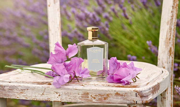 Purple Mémoire was envisioned as a bold lavender fragrance, whilst maintaining the British heritage of the ingredient. The gourmand notes of cacao and vanilla speak to the fragrant sensibilities of new generations of Floris customer. For Purple Mémoire, this juxtaposition may well be what makes the fragrance work – contrasting elements bring out new facets in each other. A fresh interpretation of a woody aromatic scent.