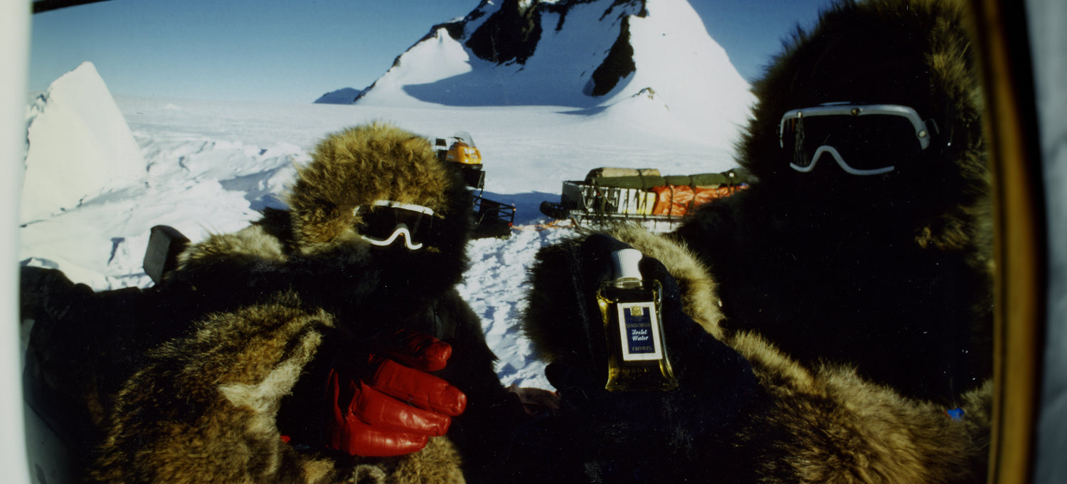 Led by the legendary Sir Ranulph Fiennes, the historic Great Transglobal Expedition of 1979 embarked on a daring journey to the South Pole, meticulously tracing the Greenwich Meridian. Amidst this epic odyssey, Floris proudly supported the expedition with a suite of provisions, including our intrepid Sandalwood Eau de Parfum. Here, captured in an image at the Borga Basecamp, our fragrance stands alongside adventurers Oliver Shepard and Charles Burton, symbolising the enduring spirit of exploration and discovery.